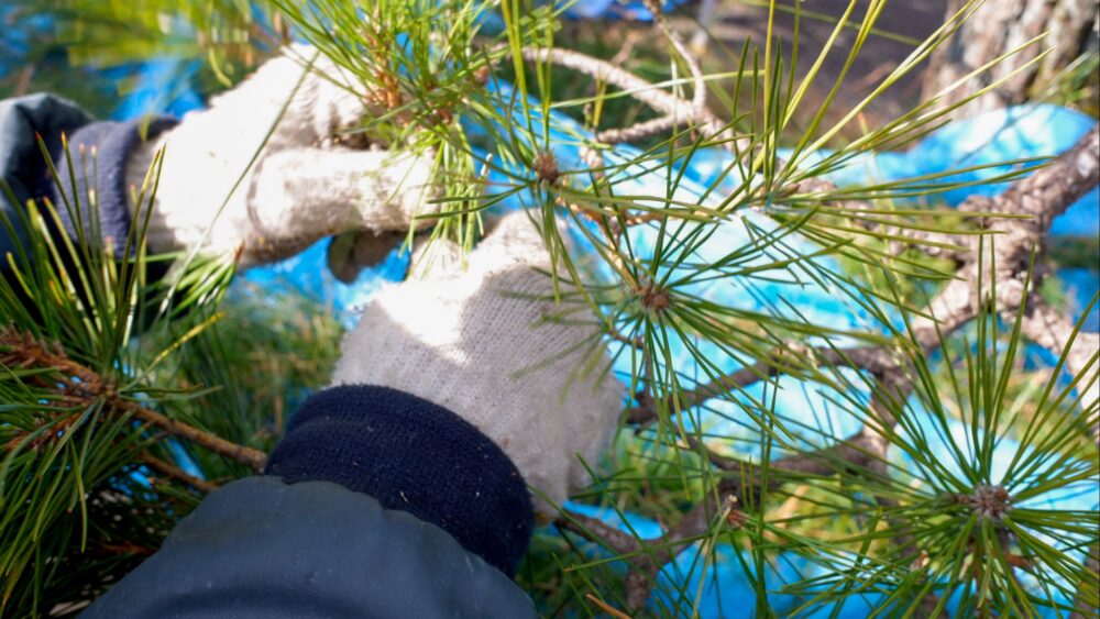 特に、「松のもみあげ」(古い葉を落とします)のご依頼も増えます。また、落葉樹は、葉が落ちた後に枝ぶりが見やすく、枝を強く切って形を整えるのに向いている時期にもなります。(画像は自撮りができないため、イメージ写真を使用しております)
