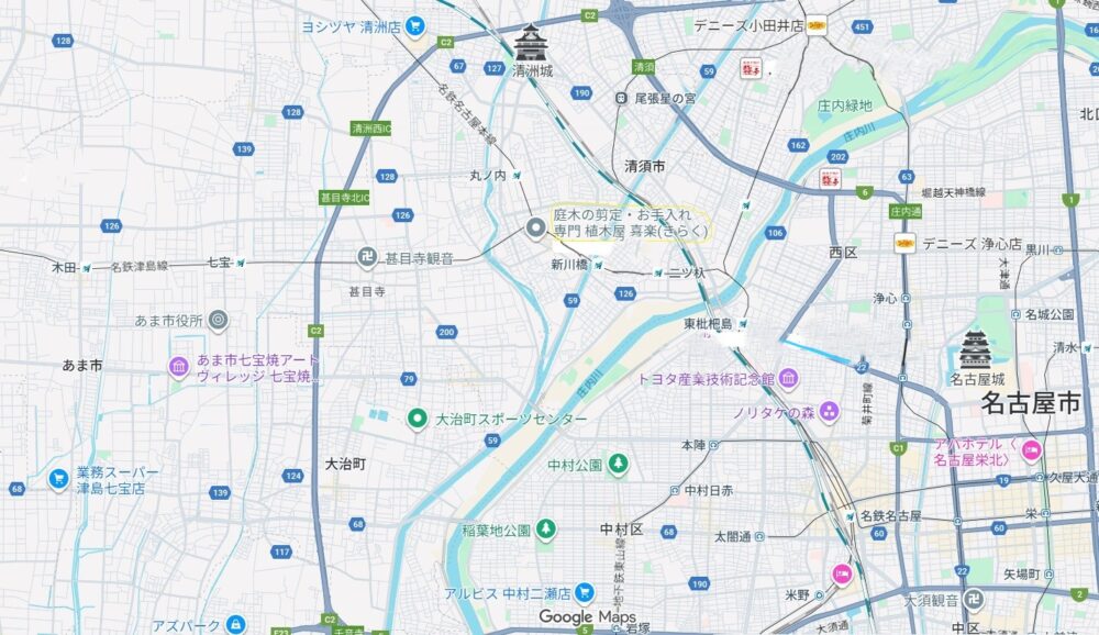 「画像2枚目:Google MAP」は、参考地図です。喜楽は清須市に拠点を置いております。清須市、あま市はもちろん、名古屋市中村区・西区・中川区などでも作業をしております。